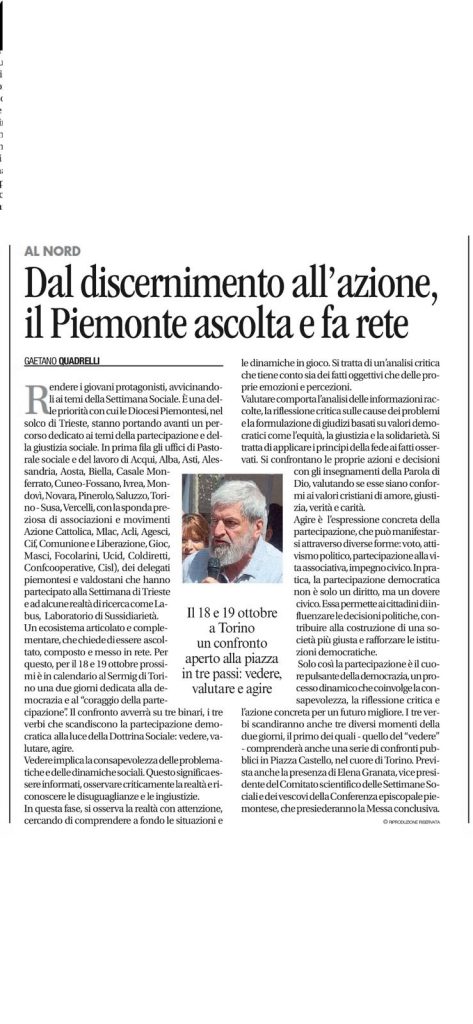 segnaliamo i link del sito di Avvenire dove potete trovare un approfondimento dei percorsi di cammino che sono in atto dopo l’evento della Settimana Sociale di Trieste dello scorso anno